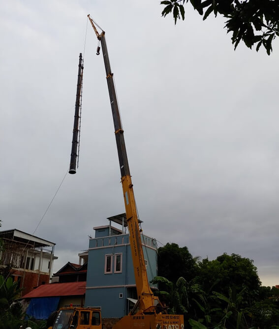 Fully assembled light weight carbon fibre Obelisk poles can be lifted easily by a light duty crane and installed on rooftop or on ground easily within few minutes or hours. Obelisk 6m - 11m poles can be installed manually on rooftops being lightweight.